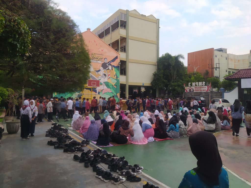 Pagi hari ini Rabu (16/07/25) Kegiatan MPLS SMPN 3 Surabaya hari ke-3 telah berlangsung sebagai bentuk rangkaian kegiatan MPLS SMPN 3 Surabaya yang tengah diselenggarakan mulai dari tanggal 14 Juli 2025 Hingga 18 Juli 2025. Pagi hari ini para murid baru SMPN 3 Surabaya mengawali kegiatan dengan sedikit berbeda dibandingkan hari-hari sebelumnya, pagi hari ini para murid baru mengawali kegiatan dengan mengikuti Shalat dhuha berjamaah. Kegiatan ini bertujuan untuk memperkuat spiritual siswa, membangun kebersamaan, menanamkan nilai-nilai karakter, dan menciptakan lingkungan sekolah yang positif, kegiatan ini diharapkan juga dapat membantu para murid baru SMPN 3 Surabaya dalam meningkatkan kedisiplinan, tanggung jawab, serta membiasakan diri untuk berperilaku baik. Setelah mengikuti kegiatan Shalat Dhuha Berjamaah, selanjutnya para murid baru SMPN 3 Surabaya diarahkan untuk kembali ke kelas masing-masing untuk mempersiapkan diri mengikuti kegiatan berikutnya.