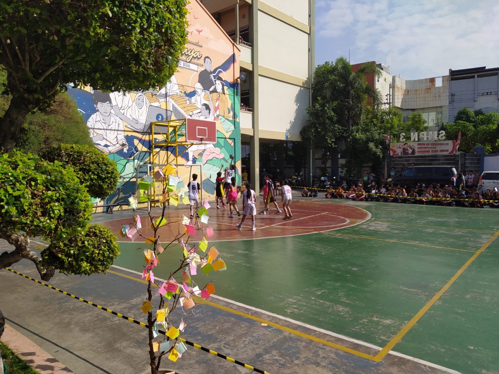 Pada hari ini, kegiatan MPLS SMPN 3 Surabaya berfokus kepada pengenalan serta eksplorasi minat bakat para murid baru SMPN 3 Surabaya melalui kegiatan pengenalan ekstrakulikuler yang ada di SMPN 3 Surabaya sehingga melalui kegiatan ini diharapkan para murid baru mampu mengetahui, mengenal, serta memilih esktrakulikuler yang sesuai dengan minat bakat masing-masing. Namun sebelum memasuki acara inti tersebut, para murid baru SMPN 3 Surabaya diarahkan untuk berkumpul di lapangan sekolah untuk mengikuti kegiatan menempel harapan di pohon harapan.